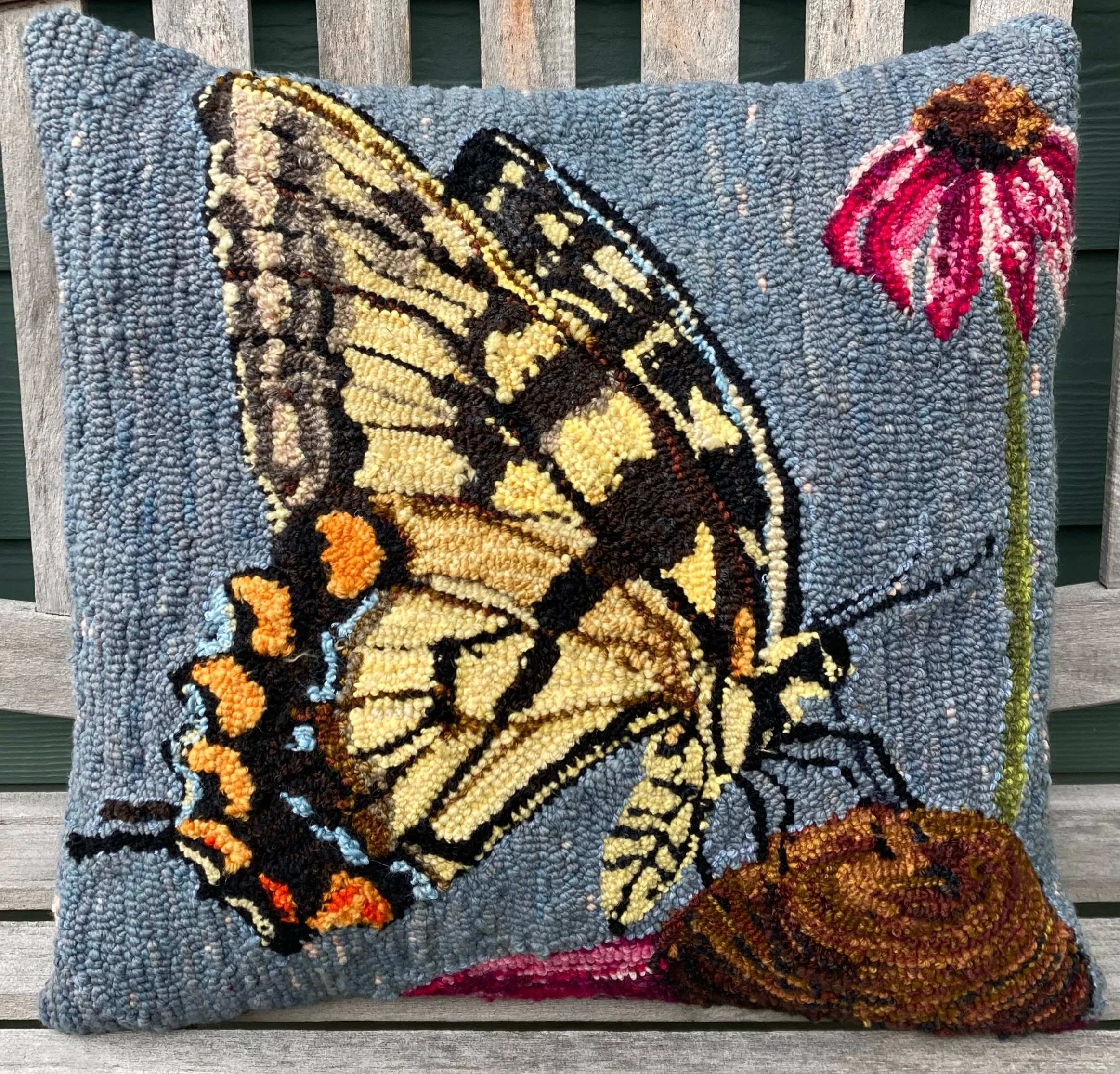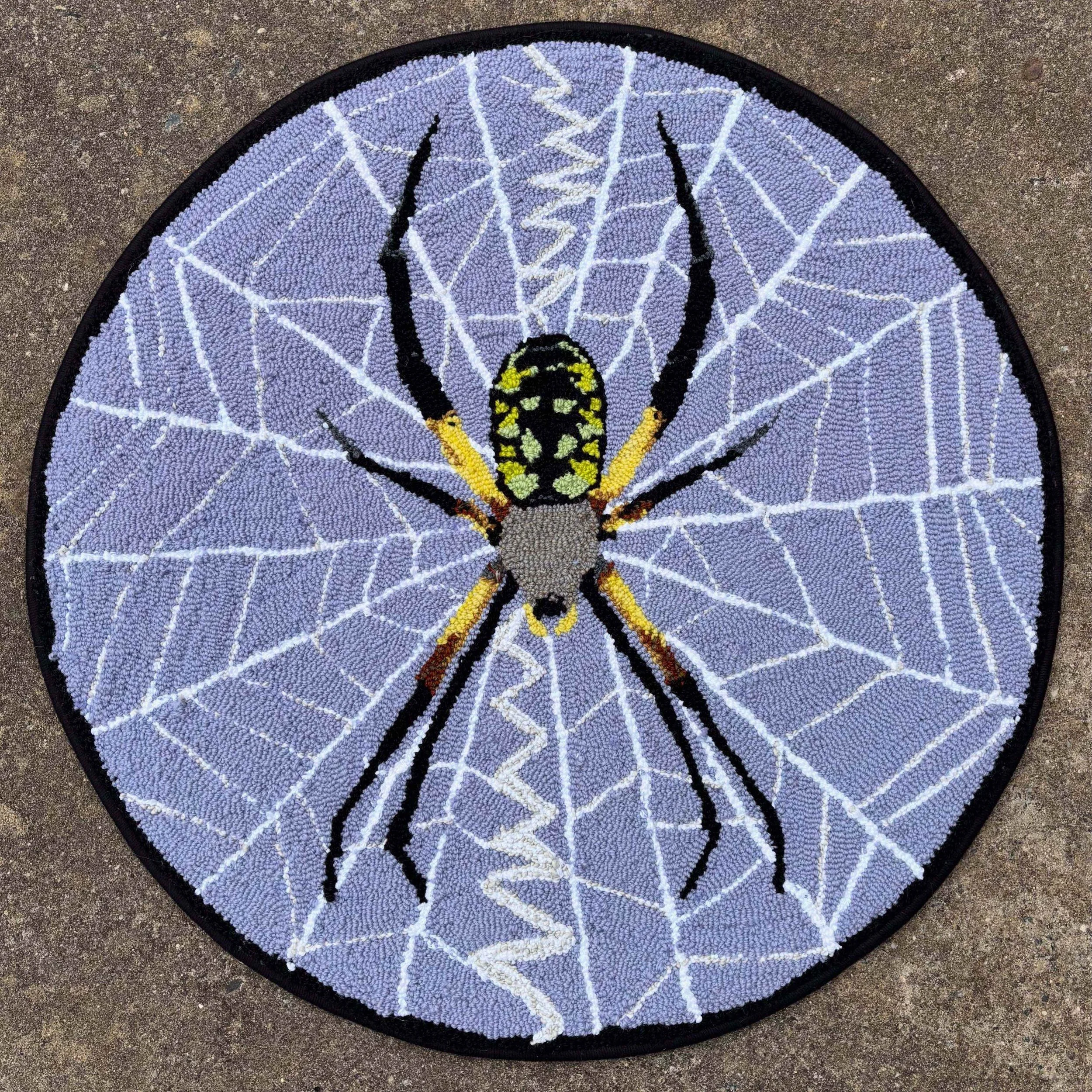 Abigail Treece is an artist who works in clay and wool. She makes cozy, functional ceramics, and whimsical tufted pillows and rugs. In her tufted work she uses all-natural fiber yarn and sustainably sourced fabrics. She works with a tufting gun to turn her designs and drawings into functional works of art. After the tufting process is finished, a backing is applied to the rugs and pillows before they are either sewn or the rug edges are bound.