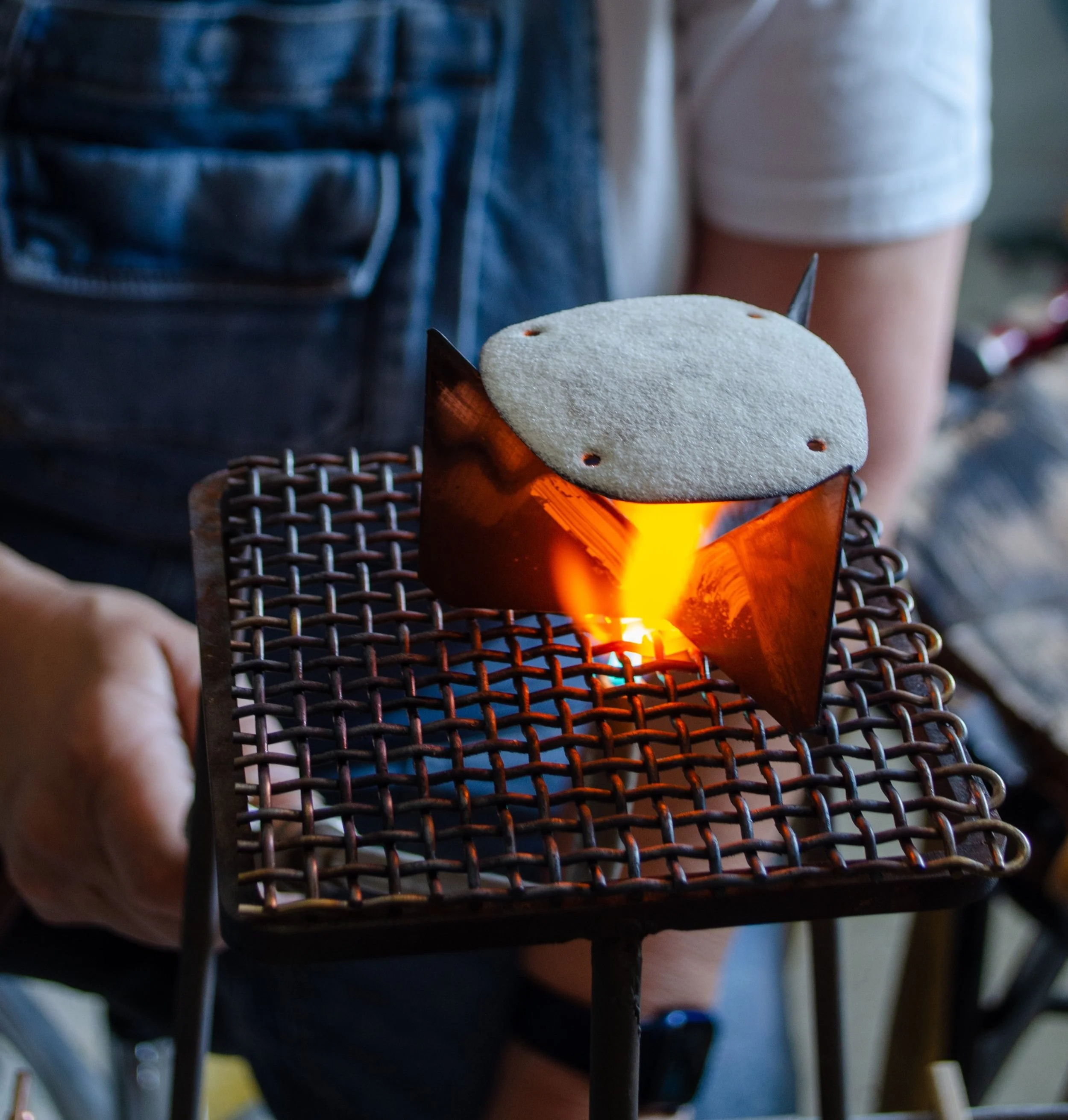 Vaughn, who is continually exploring new techniques and skills, has recently focused on enameling techniques to create wearable art and seasonal ornaments. This allows a more controlled exploration of color on copper.