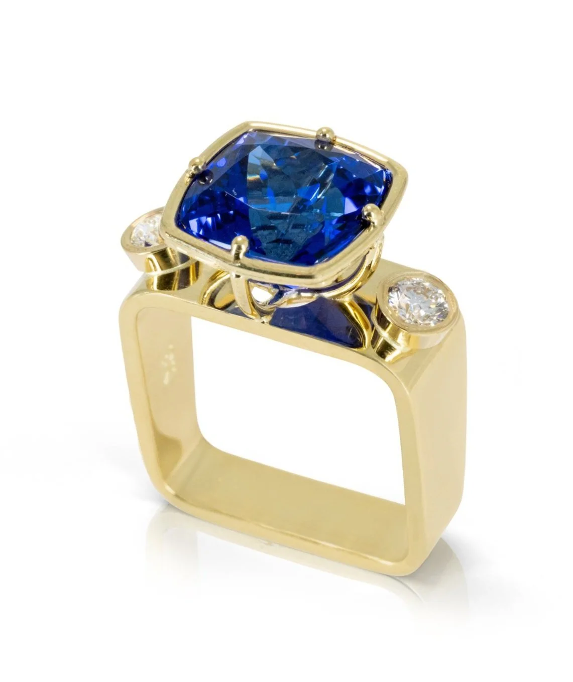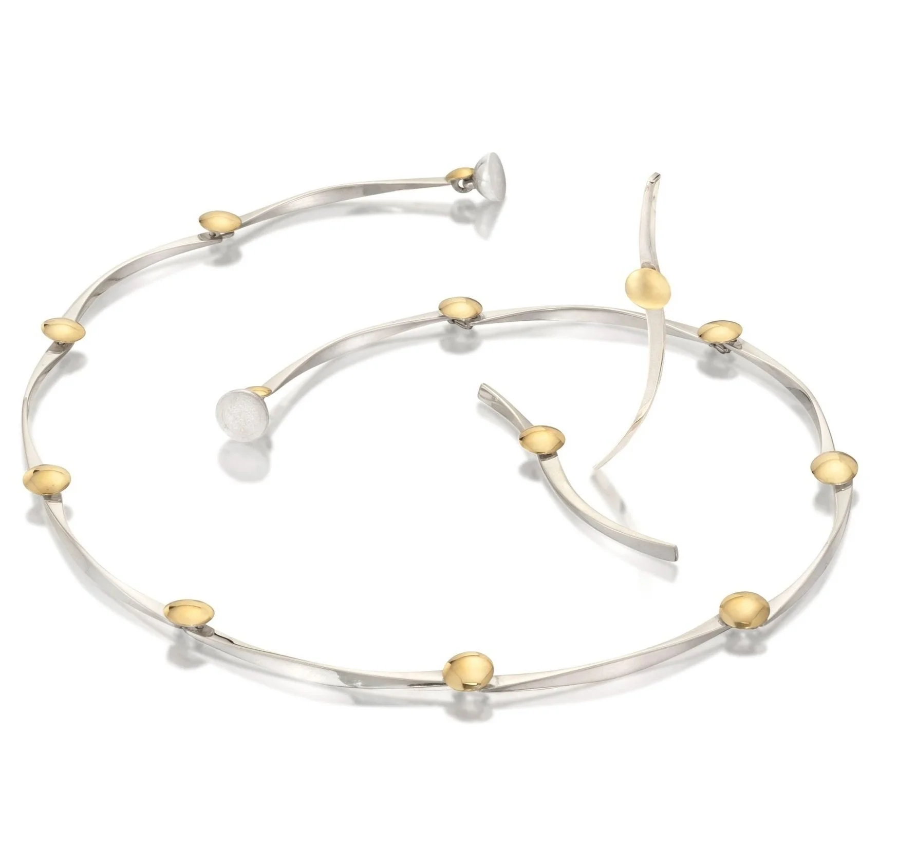 What interests me in designing jewelry is creating the unexpected. Using precious metal forms, fine gems, and small diamonds, I aspire to find rhythm and balance in each piece I make. Having no formal education in metalworking or jewelry design forced me to learn by trial and error. It also gave me the opportunity to use tools in untraditional ways and to develop my design sense separate from an instructor’s influence. Challenged to draw, I’ve always worked directly with metal to express my ideas. I’ve been a studio jeweler for the last 52 years.
