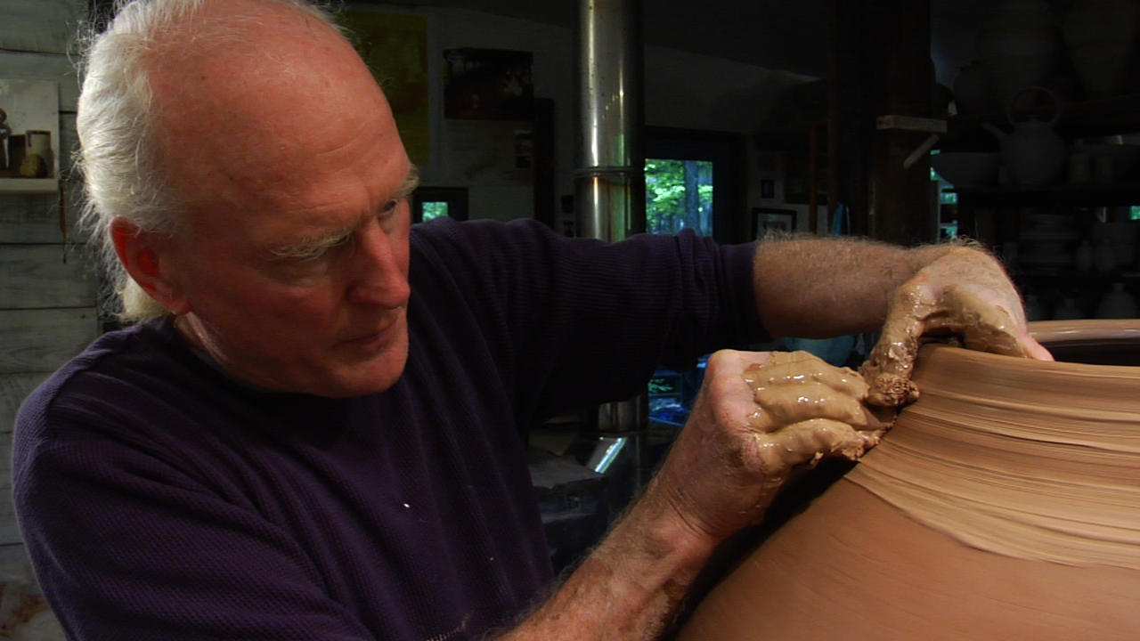 Kevin Crowe throws Asian-English inspired pots, which are fired for seven days in the anagama at Tye River Pottery. He has taught workshops throughout the United States and Great Britain focused on kiln building, wood firing, large-scale throwing, and tea bowls. Kevin lives in the foothills of the Blue Ridge Mountains of Virginia with his wife, Linda, and furry studio companions Ash and Little Man.