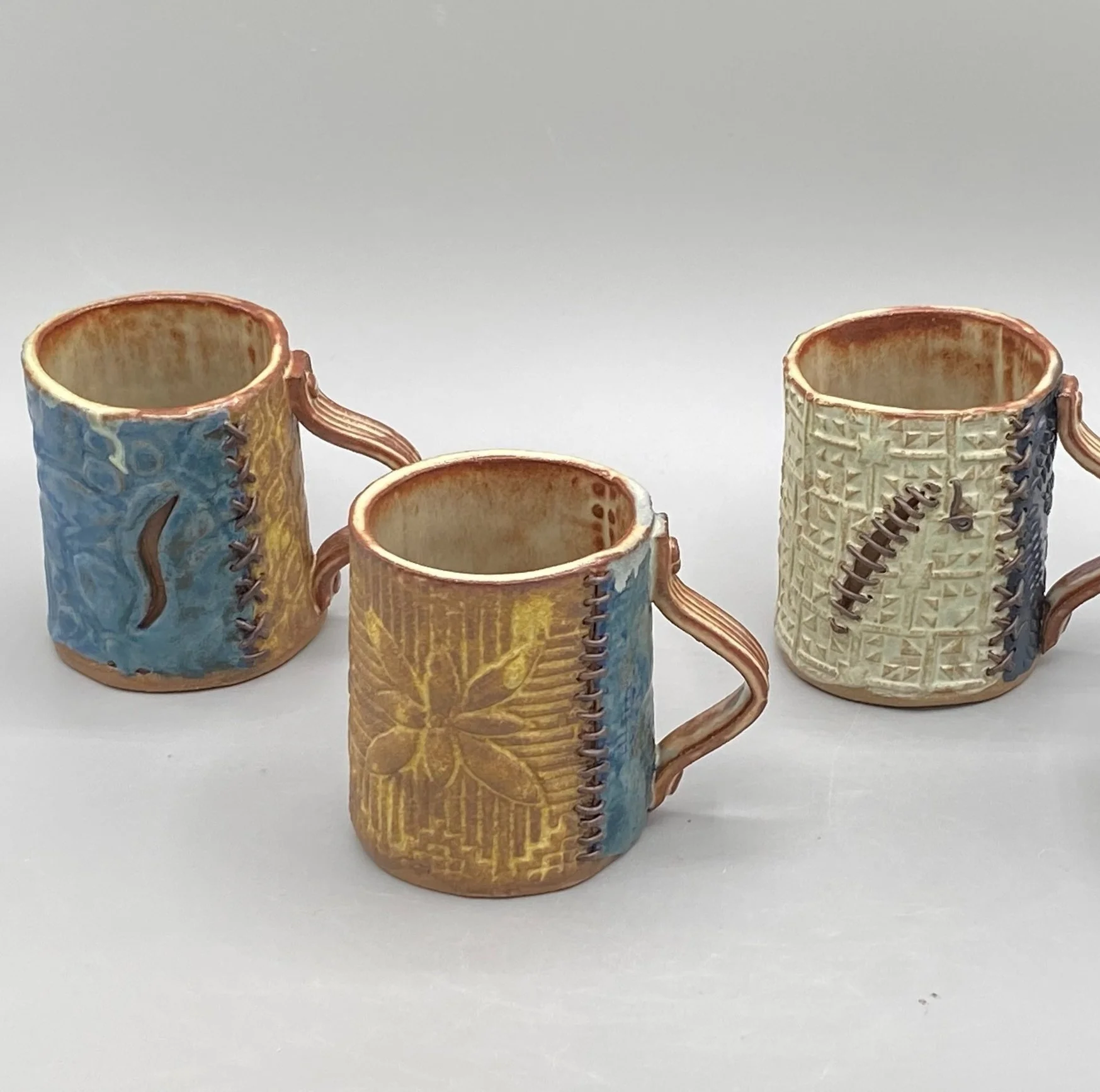 I began working with clay back in 2006, learning under the instruction of Tom Clarkson at Piedmont Virginia Community College. I immediately found my home. What attracted and still attracts me to clay is its versatility. You can create pieces that are smooth and fluid or heavily textured, inviting one to touch and experience the piece not just through sight but also touch. Recently, I have been inspired by the work of Keith Schneider, who uses clay to re-create old toys that show a history of love and use. This has encouraged me to contemplate age and the passage of time in creating pieces. I have begun using stitching and patching as well as pushing clay to show cracks and wear. My hope is that the result will encourage a person to connect with the piece.